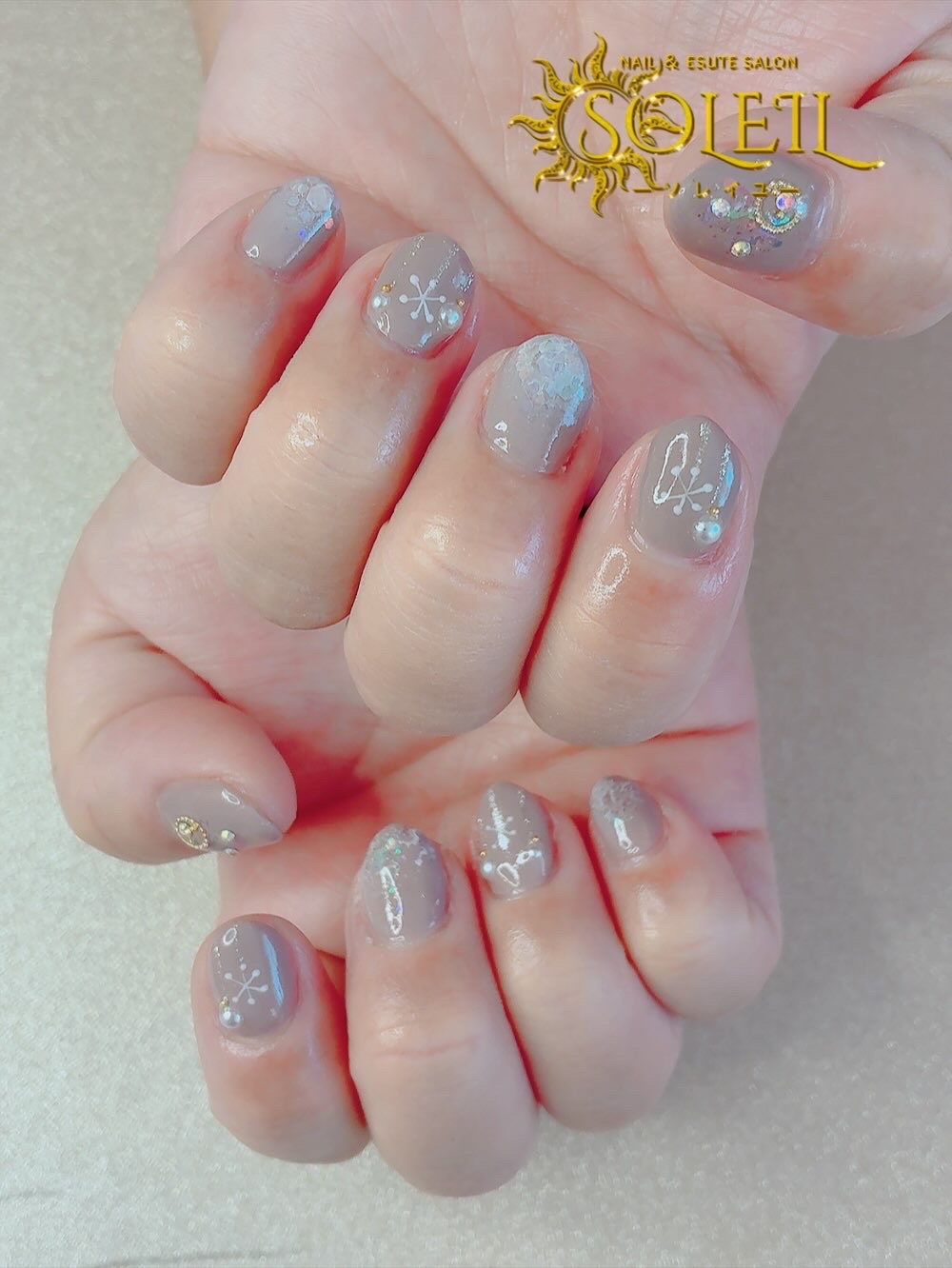 スモーキーベージュと雪の結晶❄️大人かわいい冬ネイル