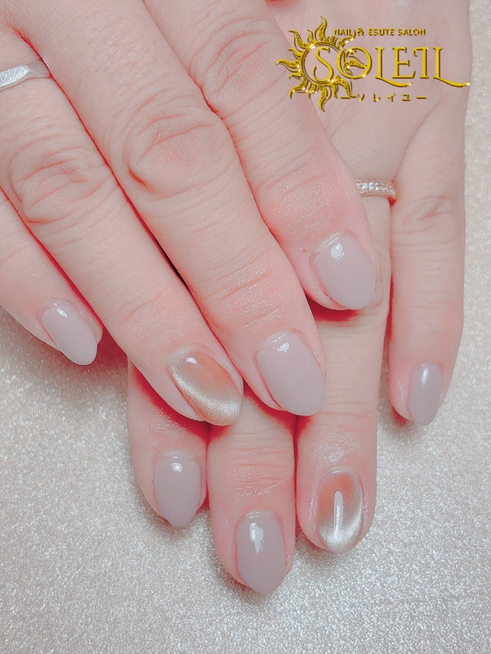 🎀大人気!定額ネイルデザイン🎀 肌なじみのいいグレージュに、 きらっと上品なベージュマグネット✨