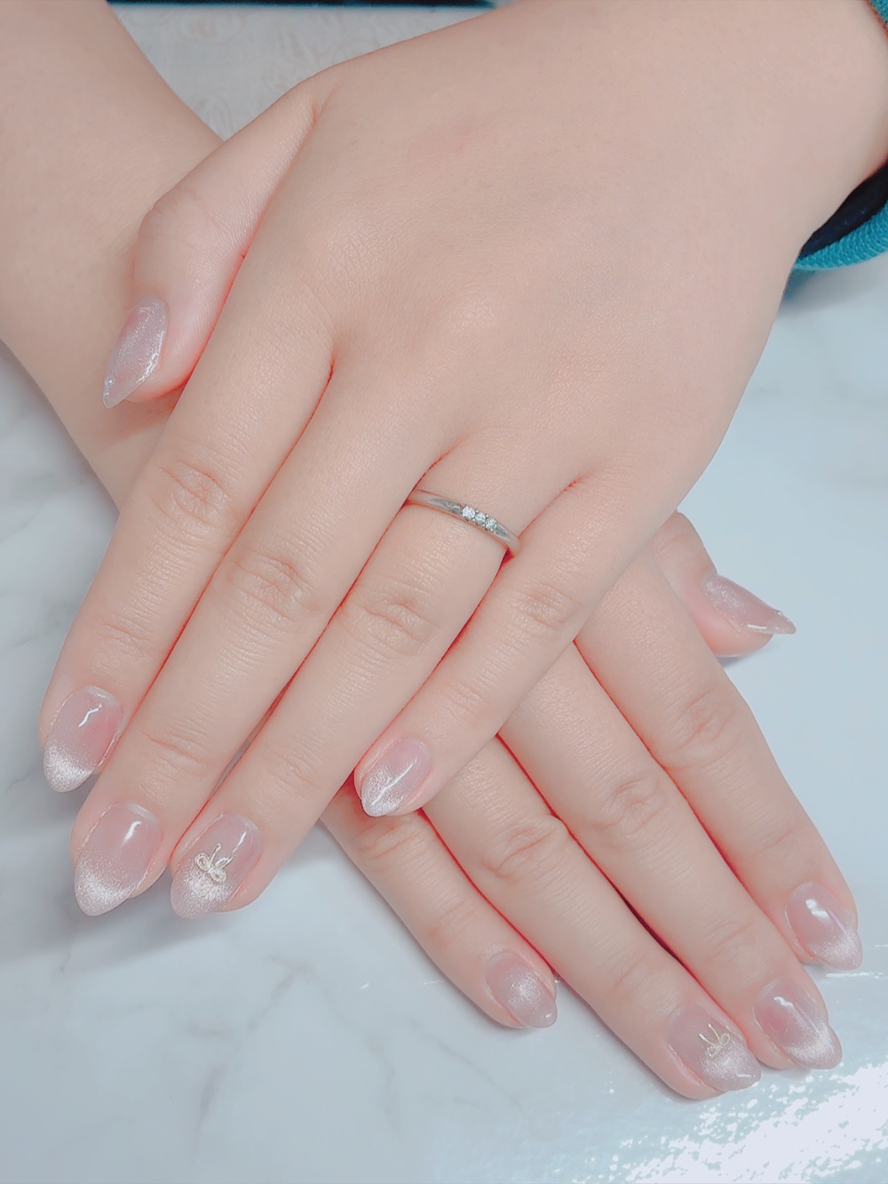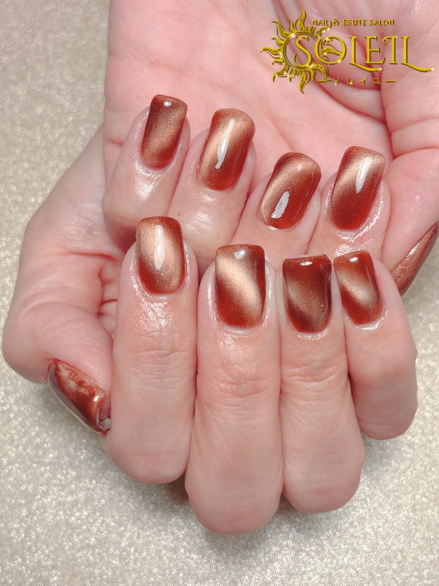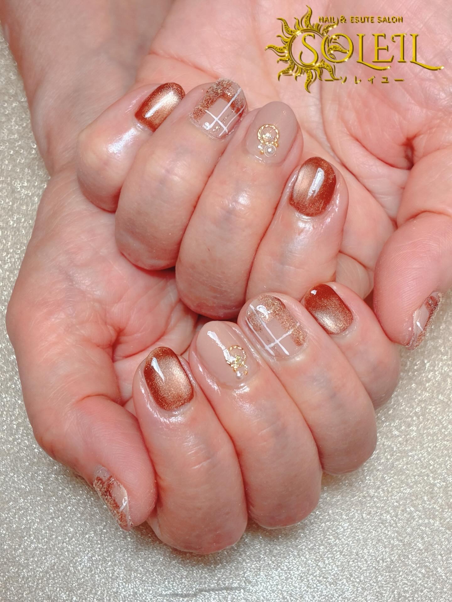 マグネットとゴールドフラッシュがキラキラ輝いて可愛い✨ お肌に馴染むカラーでとてもお似合いでした💅