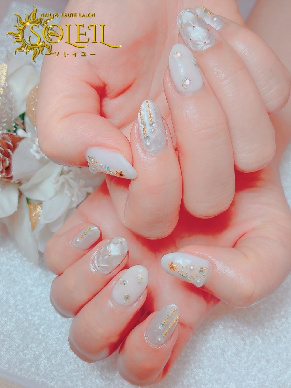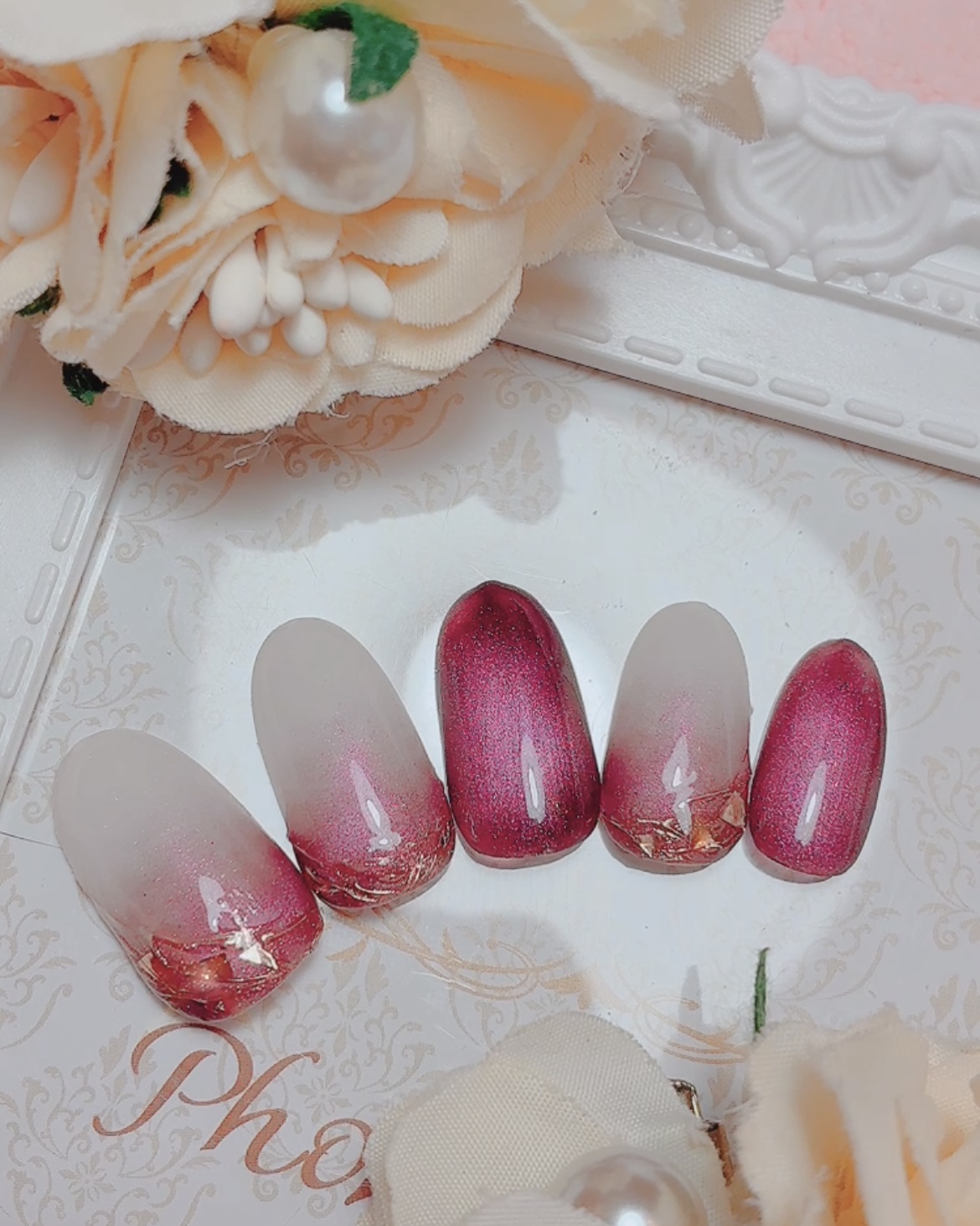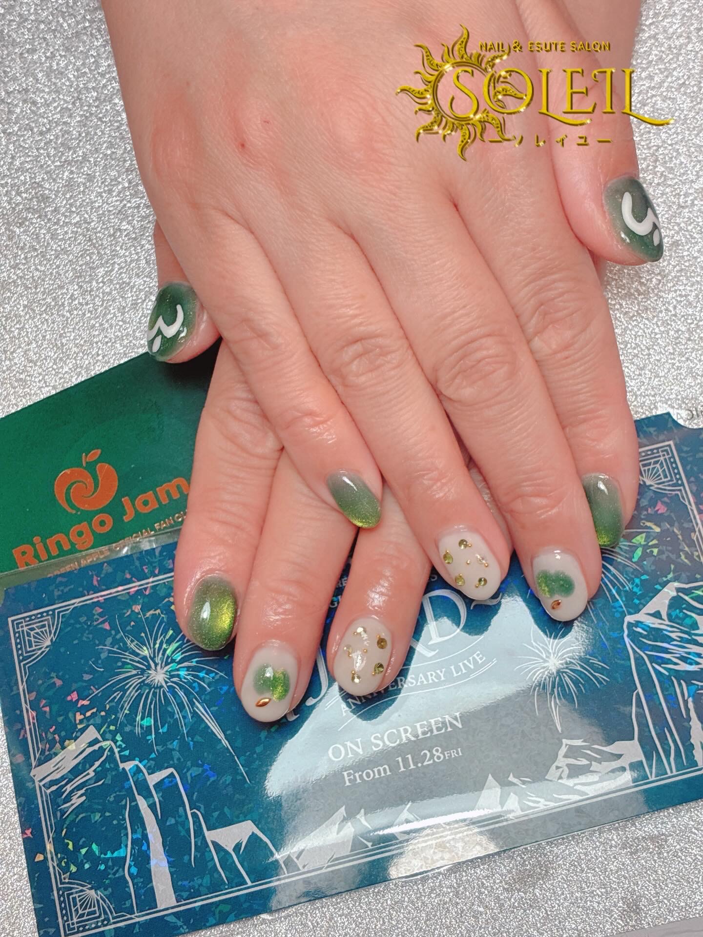 マグネットとゴールドフラッシュがキラキラ輝いて可愛い✨ お肌に馴染むカラーでとてもお似合いでした💅