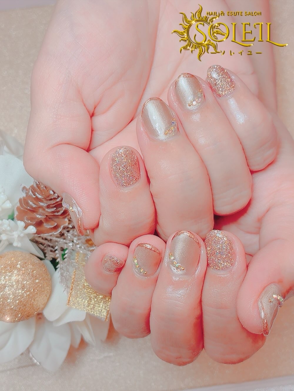 「上品なのに、光る…!?✨」 1月定額デザイン💅★* スキンカラーで 手元がきれいに見える♡♡