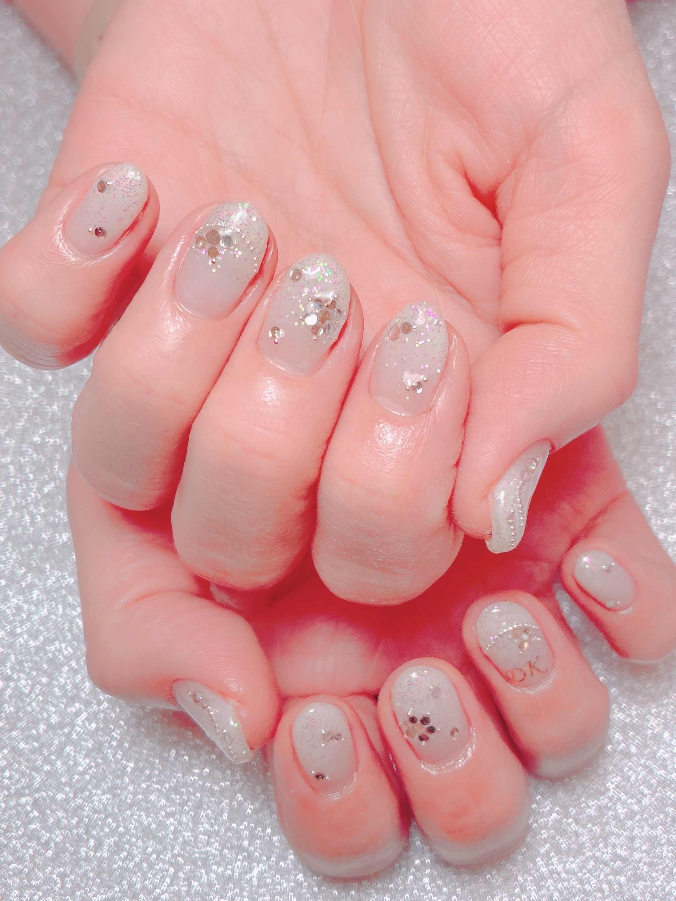 くすみピンクベージュの上品グラデーション♡♡パールで淡〜いベールをかけて上品に✨️