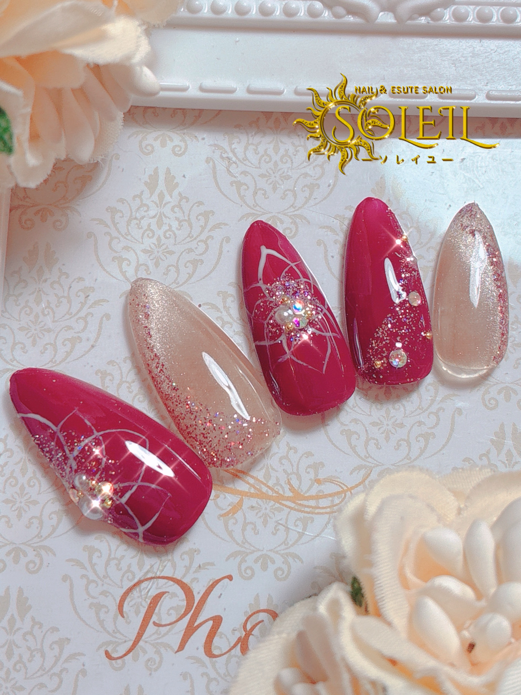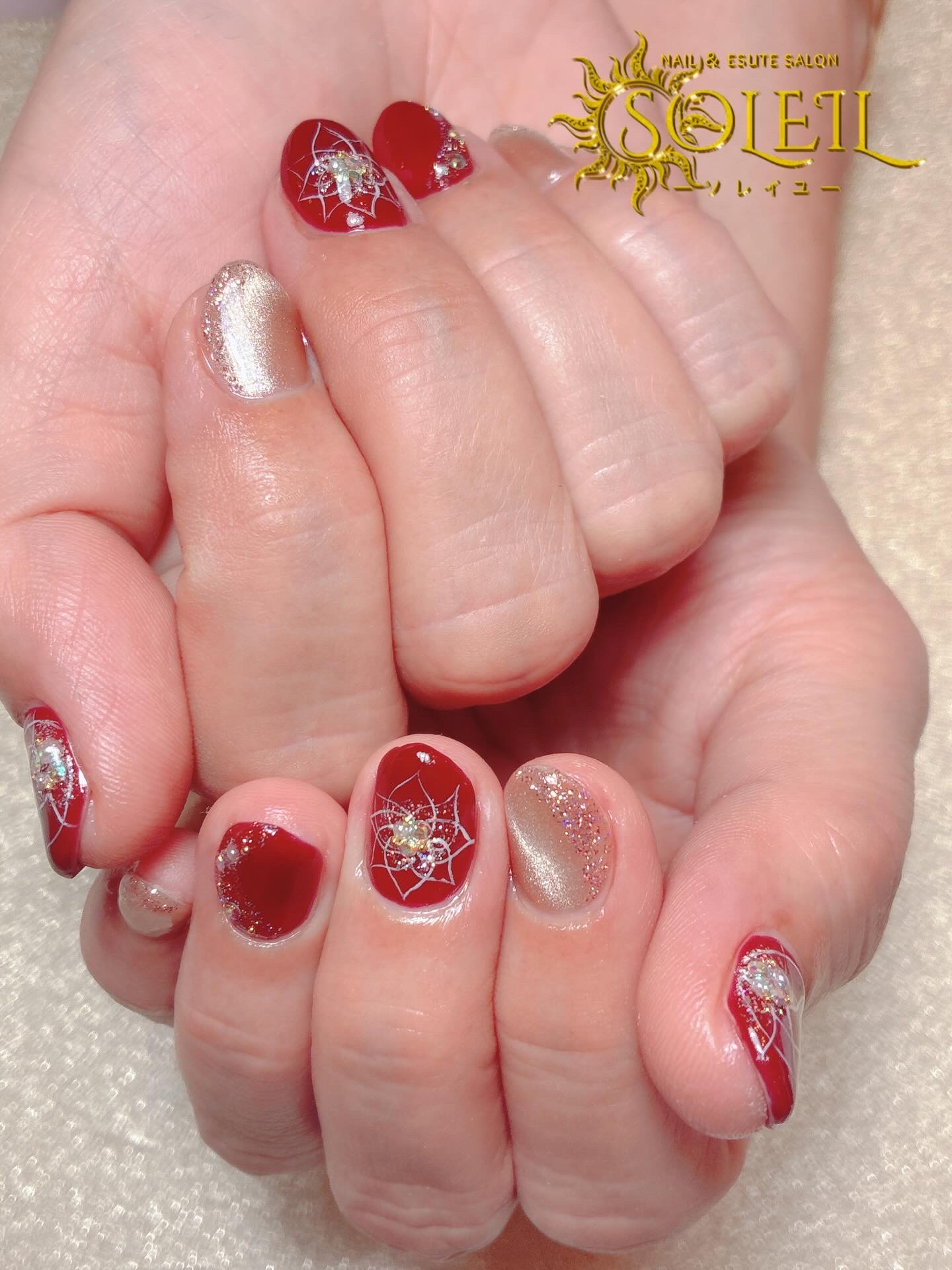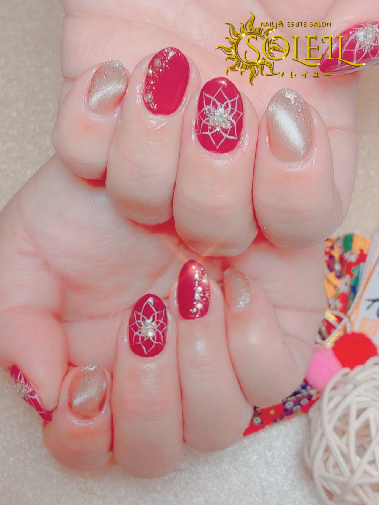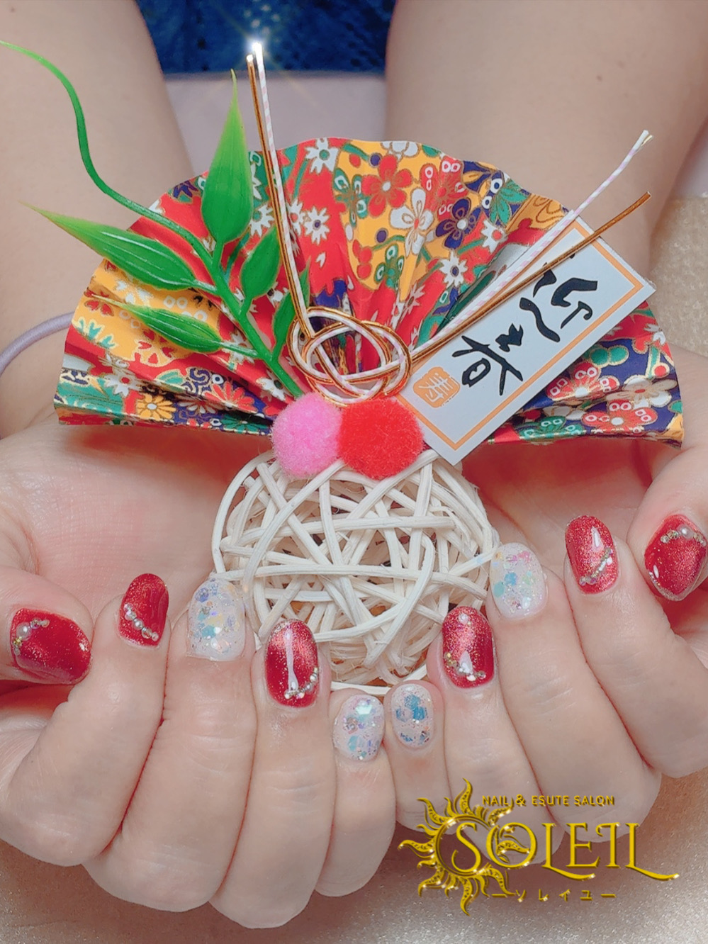 🎍✨華やかお正月ネイル✨🎍 赤のマグネットと大きめホロをプラス❤️