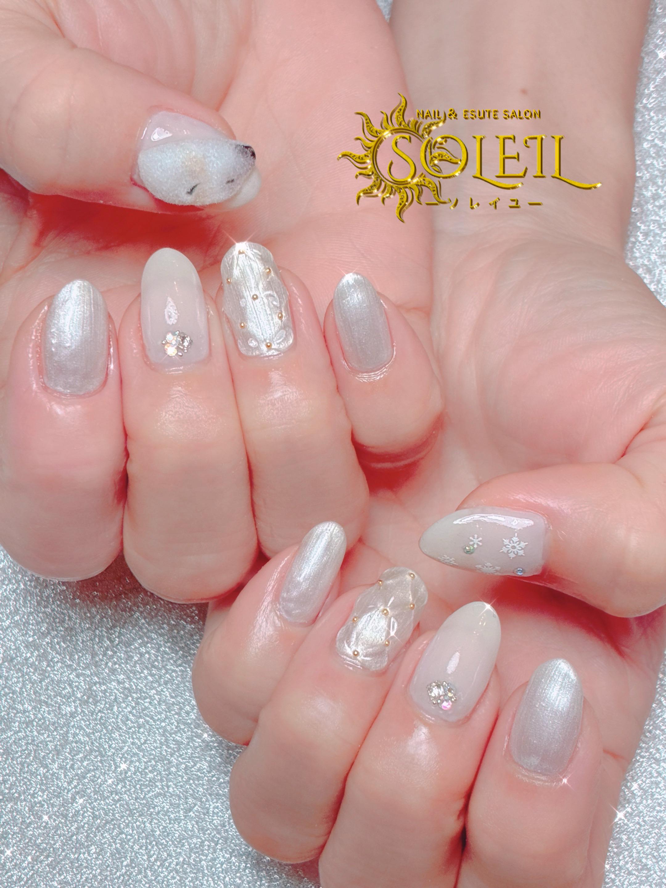 スモーキーベージュと雪の結晶❄️大人かわいい冬ネイル