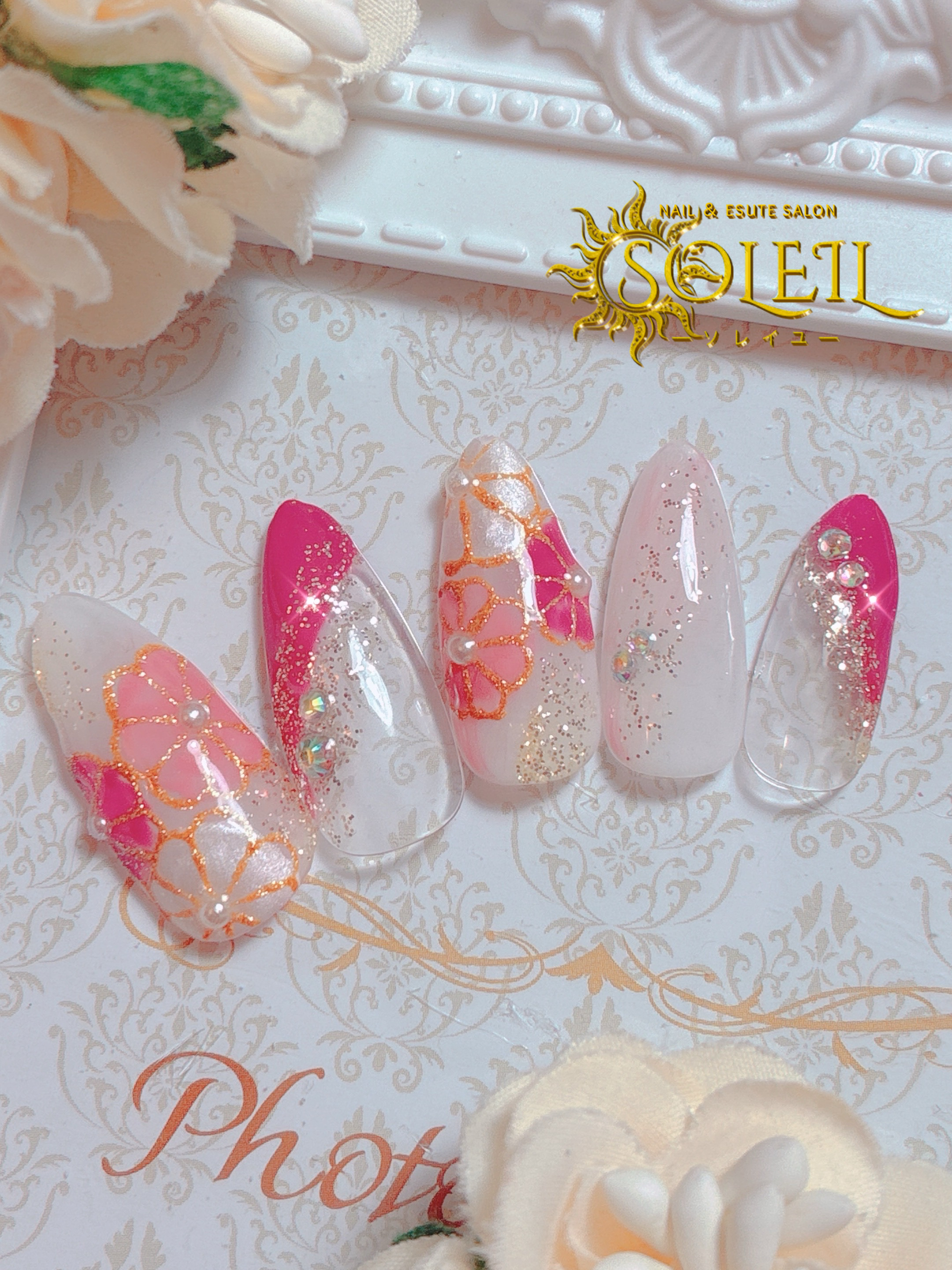 ピンクユニコーン🦄💗 ブリオンの華奢ラインと ストーンたっぷりの華やかネイル✨