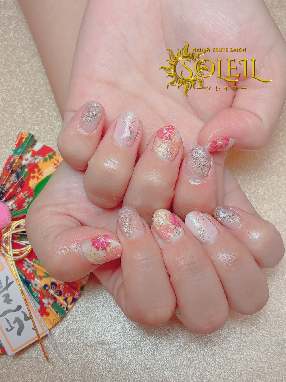 🎍お正月ネイル🎍 ピンクの和柄で、指先から新年気分🌸