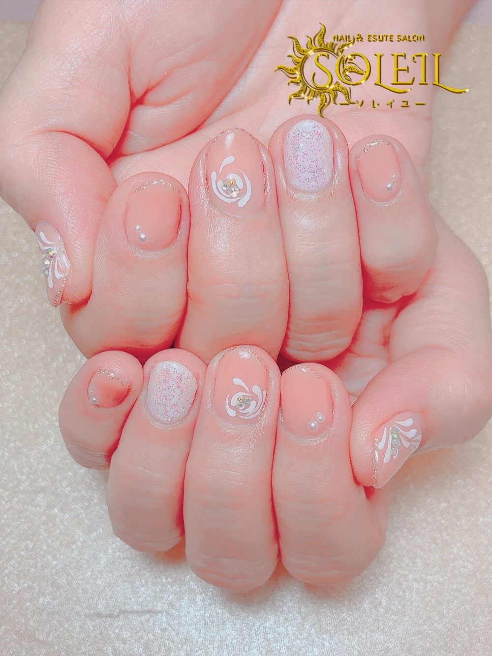 💅 アンティークネイル × ピンクベージュ! ナチュラルカラーで、 上品さと可愛らしさを両立