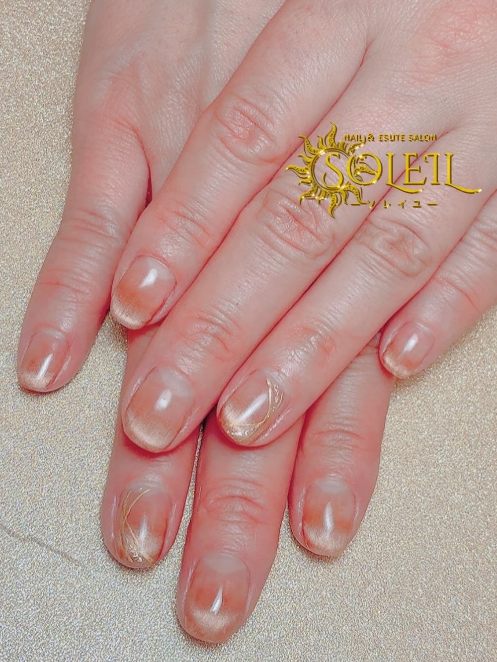 マグネットベージュに 爪先キラッとブロンズミラーライン✧˖°