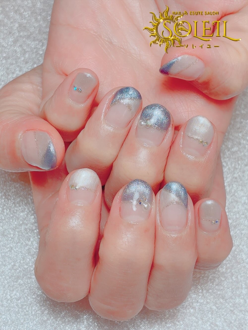 シルバーマグネット×シルバーミラーのグラデーション✨ キラキラが止まらない輝きネイル💫
